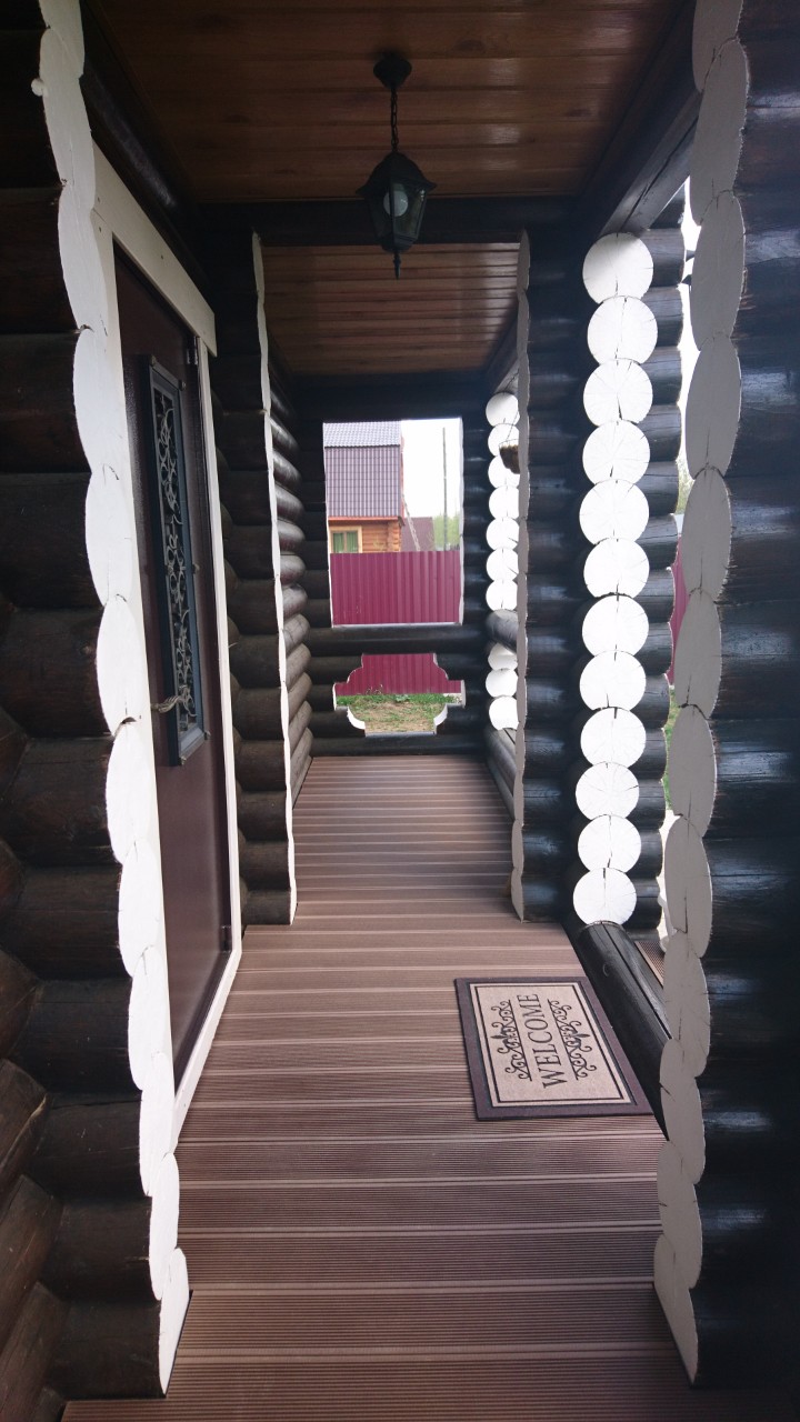 Село Троица в Сылвенском сельском поселении Пермского района Пермского края. Осуществили поставку террасной доски Декрон и ступеней для деревянного коттеджа из оцилиндрованного бруса.